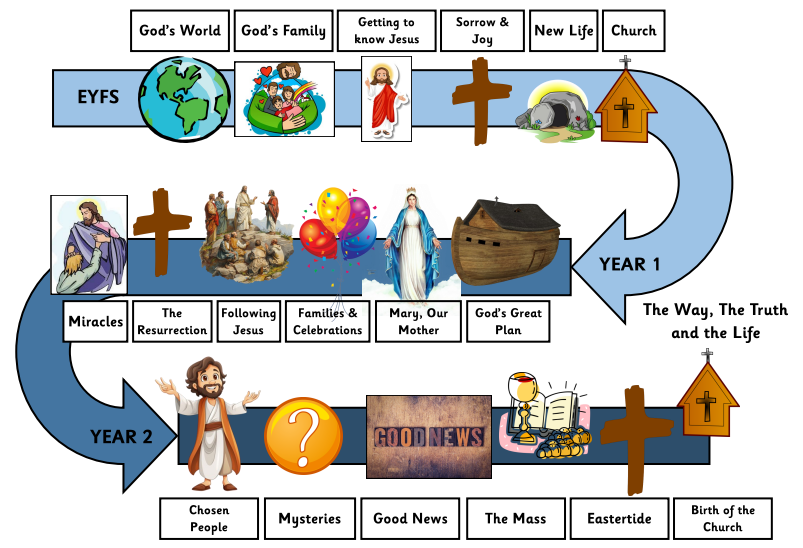 To fulfil our aims and Objectives we use the Way, Truth and the Life programme to adhere to the Curriculum Directory, as prescribed by the Diocese. We use the Planning sheets provided by the Diocese of Leeds.