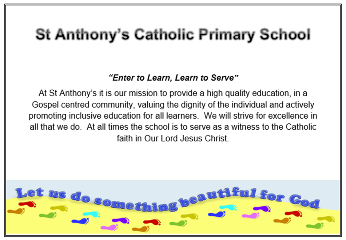 - ensure that the curriculum, in all its aspects, will reflect the fact that God's love, through the message of His Son, is at the centre of all we do